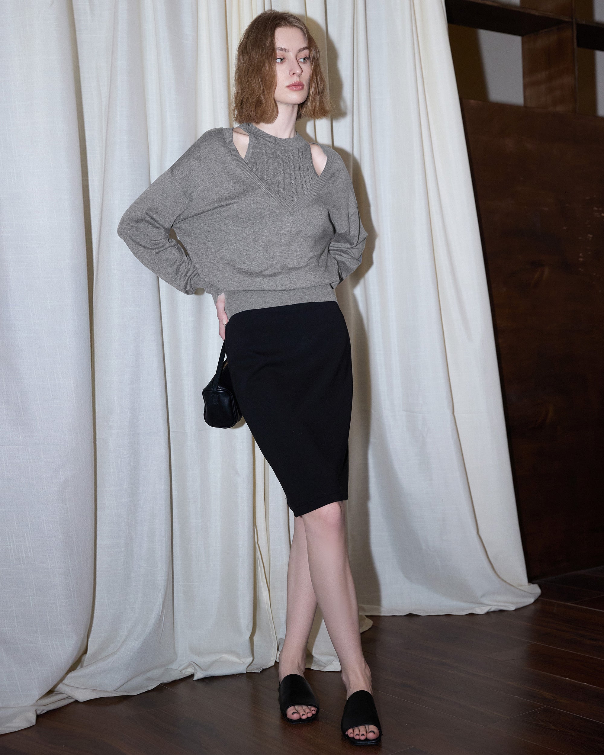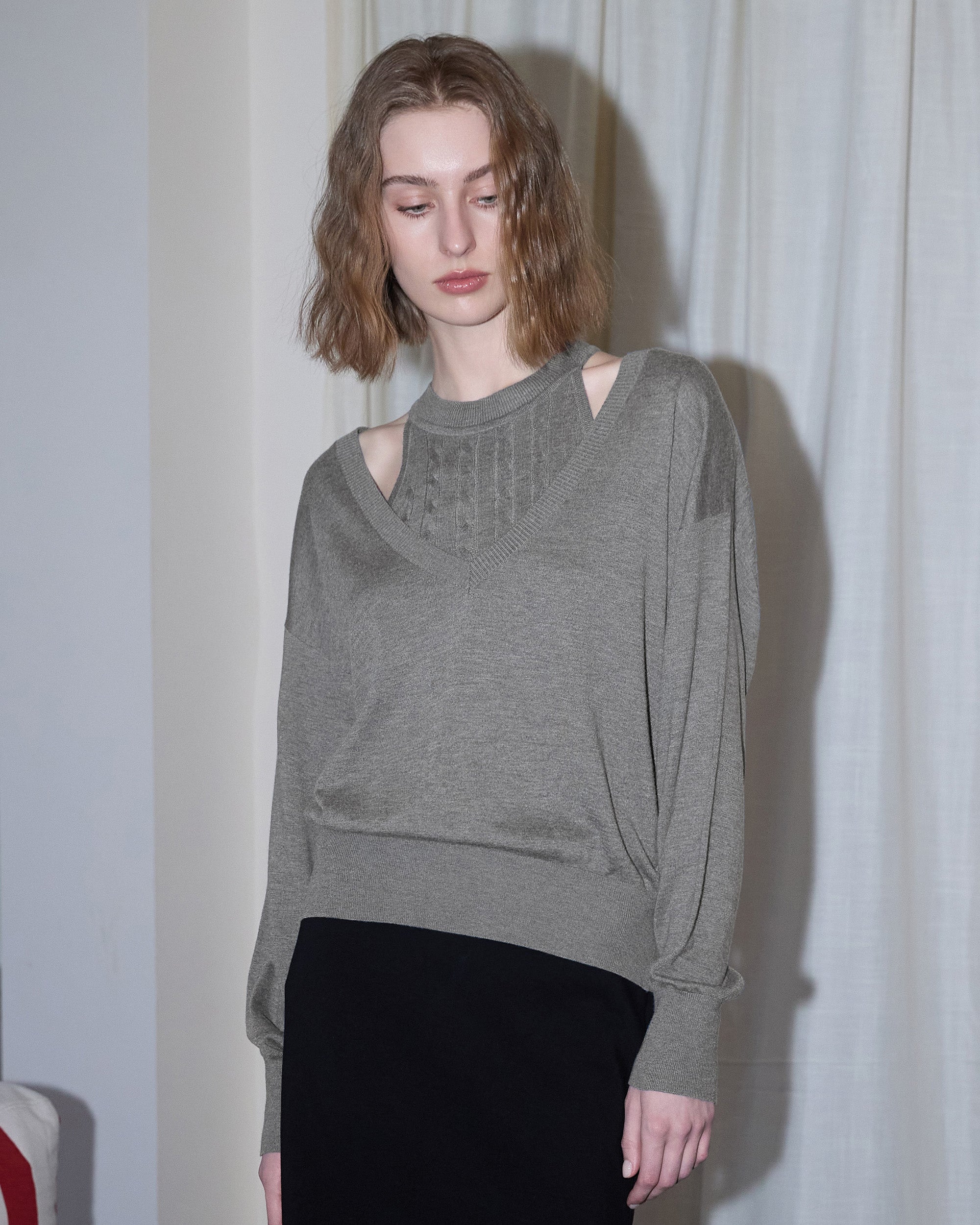 1.Deep V-Neckline: The deep V-neck elongates the neckline and enhances facial contours, creating a more delicate, refined look while adding a touch of feminine allure.