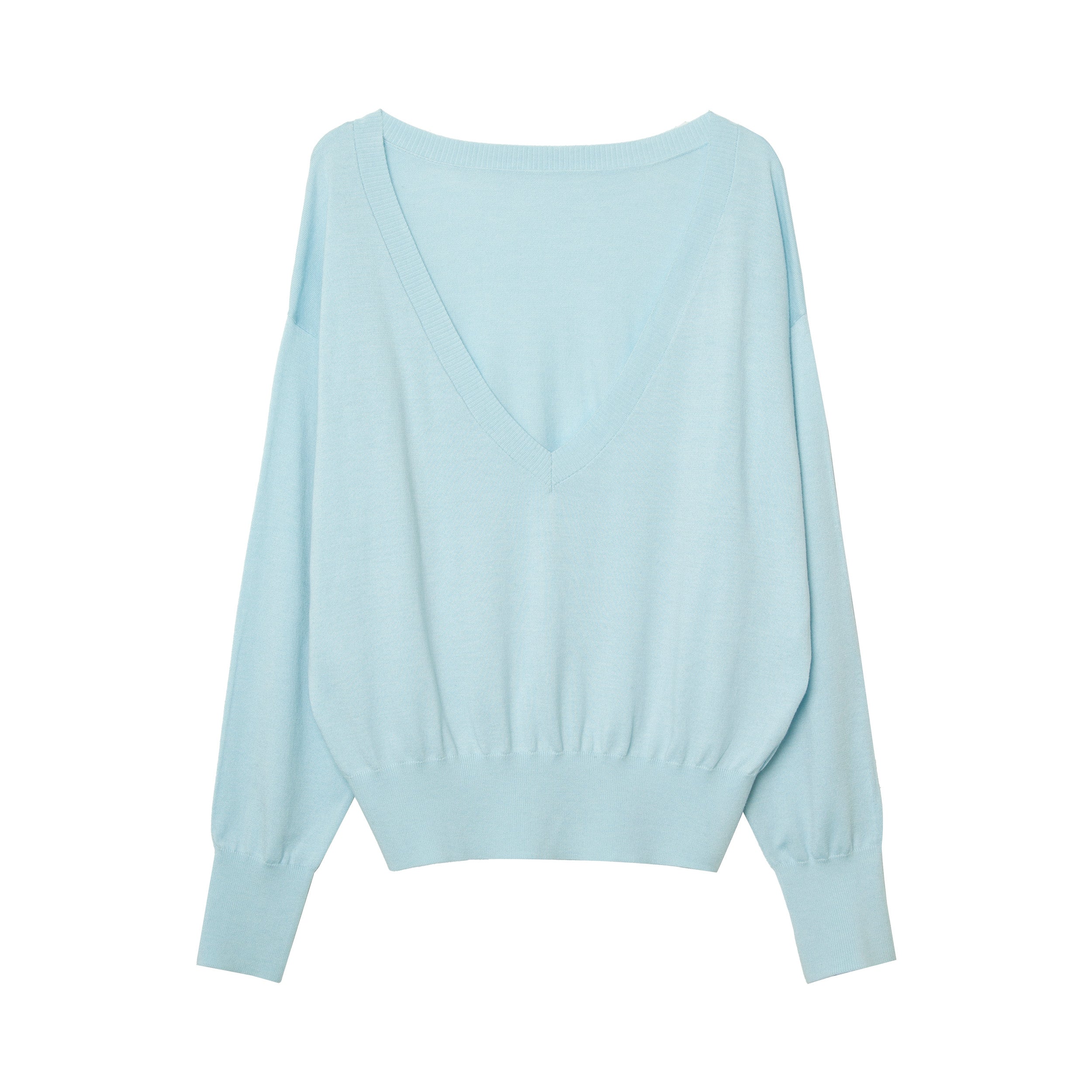 Silk Blend Deep V-Neck Knit Pullover
