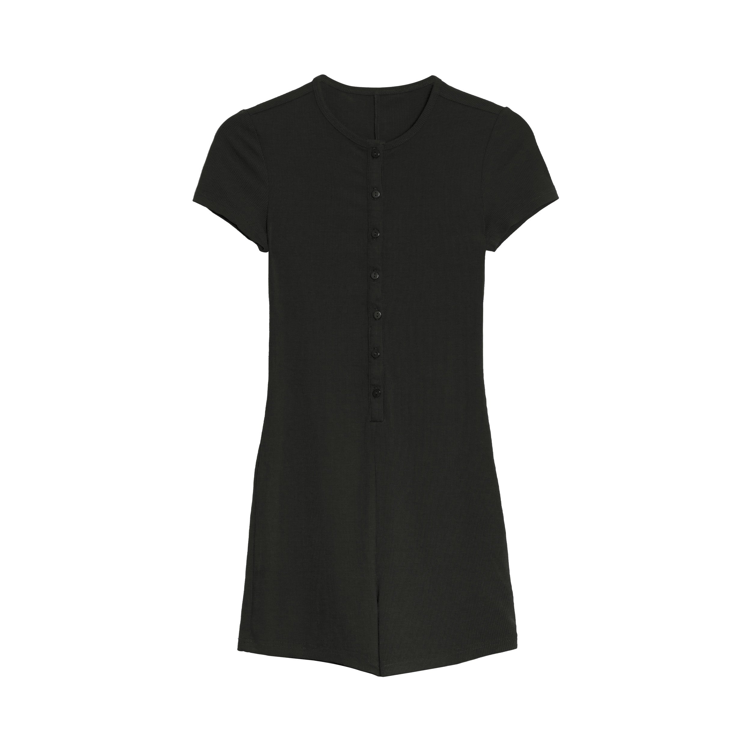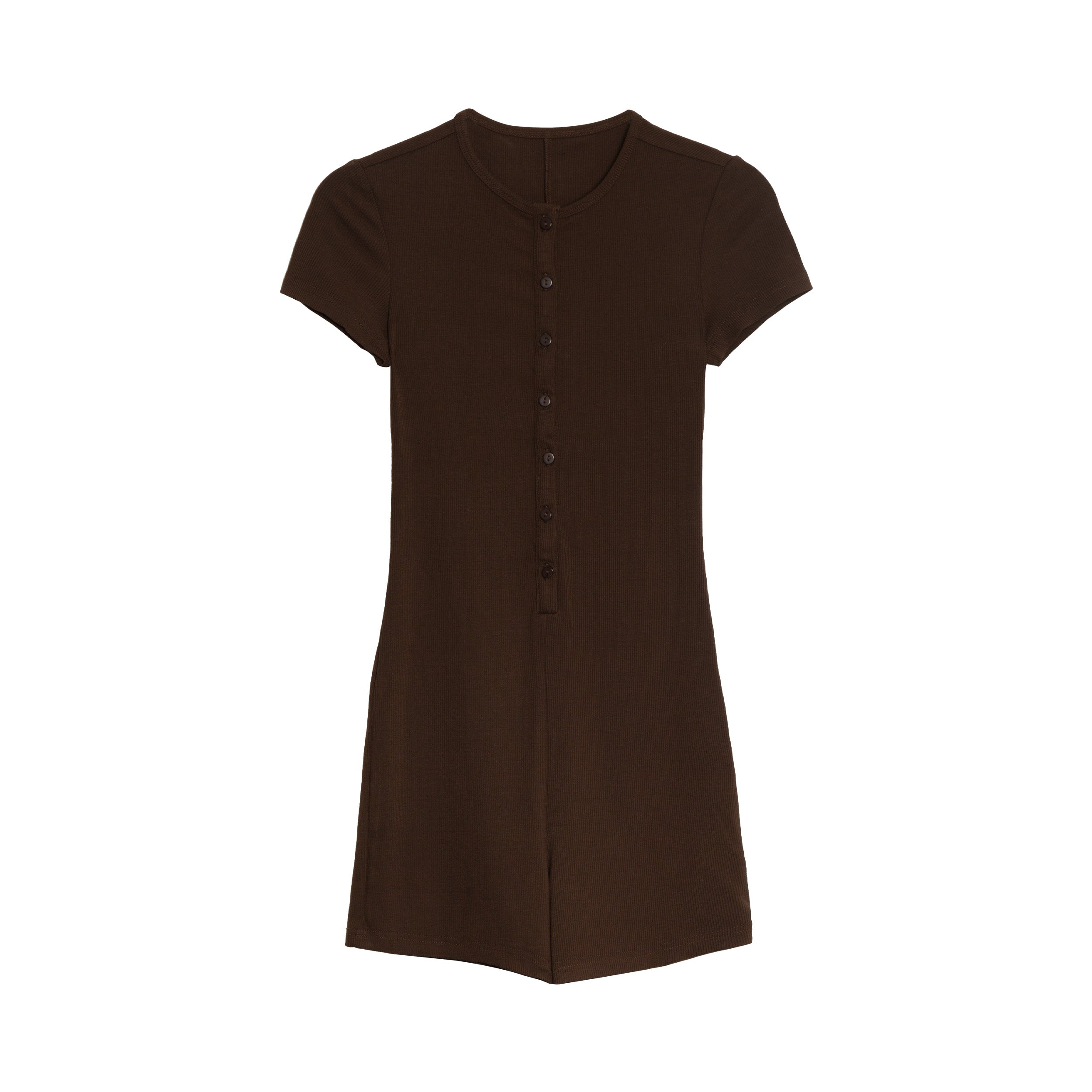 HennyRue's jumpsuit is your new wardrobe hero, offering a seamless blend of style and comfort. The elegant design enhances your silhouette with a leg-lengthening cut, eliminating the need for complex styling decisions and saving you precious time. With exquisite buttons crafted for ease and aesthetic appeal, dressing becomes effortless. Available in classic colors like black, white, gray, and brown, this piece ensures you stay on trend effortlessly. The ribbed texture adds a touch of fashionable depth, making it a versatile and premium option for any occasion.